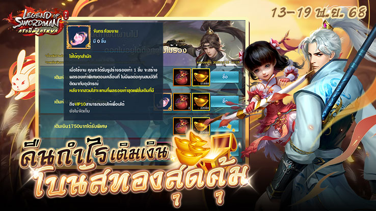 [กระบี่มังกรหยก] คืนกำไรเติมเงิน โบนัสทองสุดคุ้ม 13-19 พ.ย.