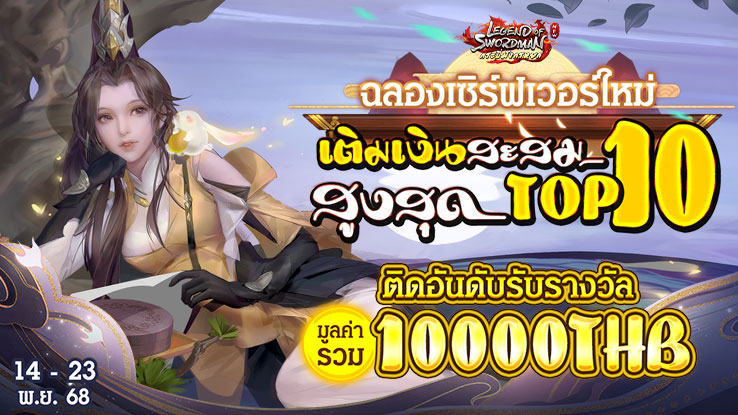 [กระบี่มังกรหยก] TOP10 เติมเงินสะสมสูงสุด S108 รับรางวัลมูลค่ารวมกว่า 10000THB