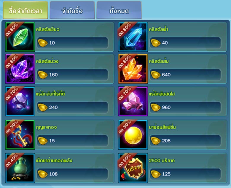 - ในช่วงเวลากิจกรรมร้านค้าไอเทมมอล์เปิดขายสินค้าลดราคาพิเศษ ลดสูงสุด 70%