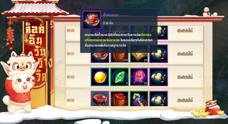- ร่วมกิจกรรมได้ในเกมที่เมนู ข่าวล่าสุด à แจกรางวัลต้อนรับตรุษจีน