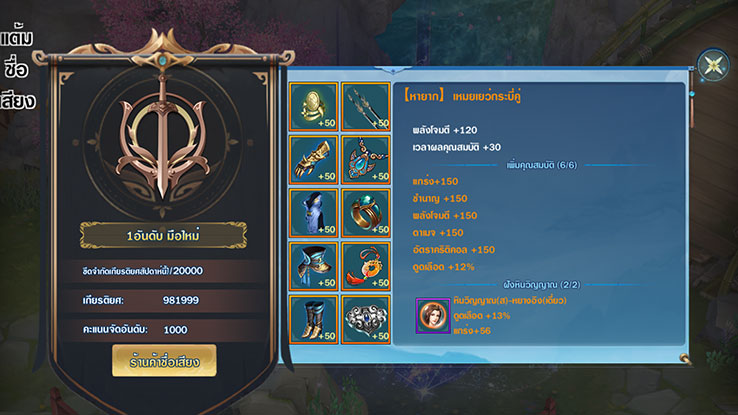 แข่งขันประลองยอดยุทธ์แบบจัดอันดับคะแนนเกียรติยศ ท้าทายกับผู้เล่นข้ามเซิร์ฟเวอร์ สะสมคะแนนเกียรติยศอัพเกรดอุปกรณ์เฉพาะการแข่งขัน อัพขั้นไต่อันดับให้สูงพิชิตหนึ่งในใต้หล้า