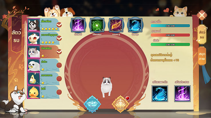 - พรสวรรค์สัตว์เลี้ยง ฟังก์ชั่นเสริมเพิ่มพลังให้ผู้ครอบครอง