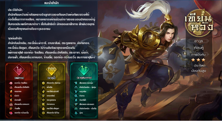 สำนักเทียนหวัง ผู้คนในยุทธภพต่างเคารพนับถือ มีพลังที่แข็งแกร่งแต่ไม่รังแกผู้ที่อ่อนแอ คอยช่วยเหลือผู้ยากไร้ เกราะสีทองค้อนคู่กายยืนหยัดปกป้อง ปราการเหล็กกล้าสยบศัตรูทั่วทิศ ฝึกฝนก้าวข้ามขีดจำกัดปลุกพลังตื่นรู้