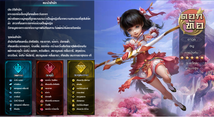 สำนักดอกท้อ ยอดยุทธ์ผู้มาจากเกาะดอกท้อในทะเลจีนตะวันออก มีชื่อเสียงโด่งดังในยุทธภพด้วยพลังการโจมตีระยะไกลด้วยอาวุธธนูสุดแข็งแกร่ง หนึ่งศรเพลิงสังหารสยบปฐพี ฝึกฝนก้าวข้ามขีดจำกัดปลุกพลังตื่นรู้