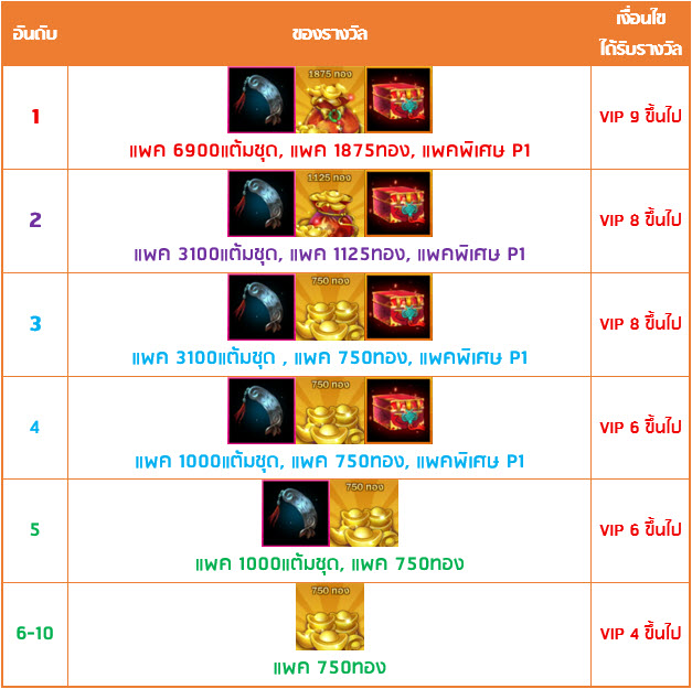 2. ผู้เล่นต้องมียอดเติมเงินระดับ VIP ขั้นต่ำตามที่เงื่อนไขกำหนดถึงจะมีสิทธ์ได้รับรางวัล