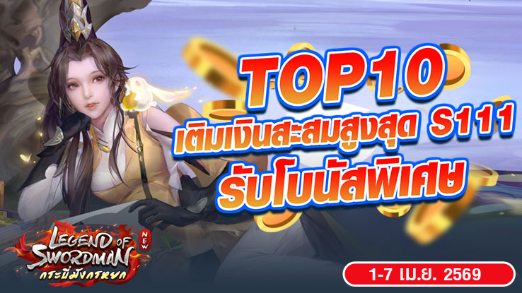 [กระบี่มังกรหยก] ฉลองเซิร์ฟเวอร์ใหม่ S111 เติมเงินสะสมสูงสุด TOP10